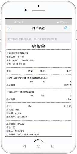 可打印销货等单据,快速处理用户单据