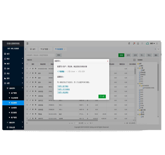 下载模板一次导入客户、供应商和商品